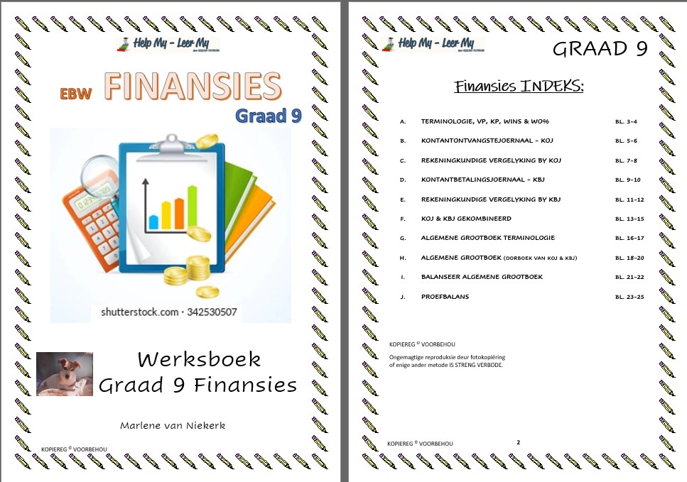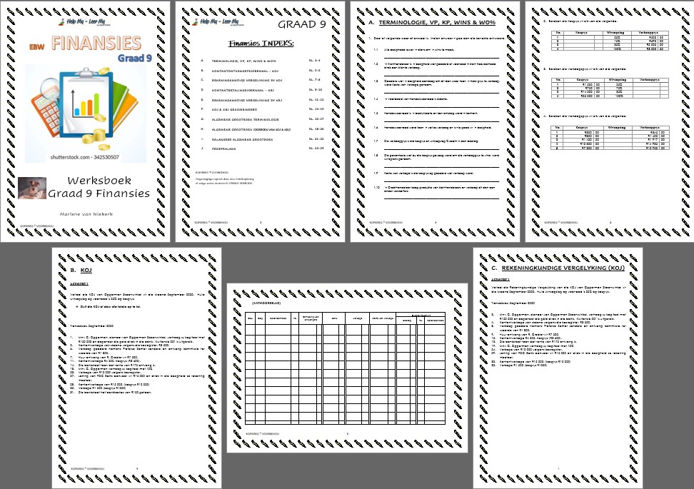 Graad 9 EBW (FINANSIES) Leerdersboek en Memorandum vir die vaslegging van Finansiële Konsepte.